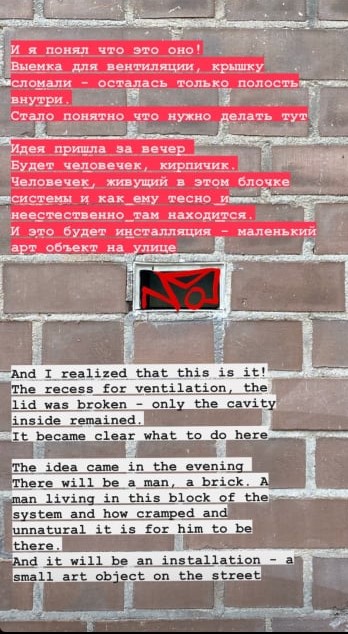 Kako umjetnik objašnjava, ideja je došla spontano. Tokom posjete Berlinu, u jednom zidu, ugledao je šupljinu među ciglama zgrade, i odmah je shvatio da je to mjesto na kojem će predstaviti svoj rad pod nazivom LOCKDOWN.